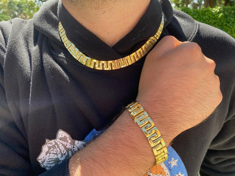 157 Grams 18 Karat Gold Link Chain Design Gold Necklace And Bracelet Men S Set For Sale At 1stdibs